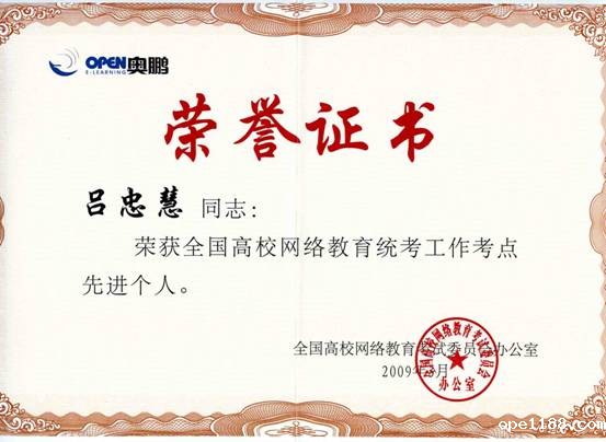 我校在2007-2008年度“统考”考点检查与评优工作进行总结和表彰中获得全国优秀考点,同时袁文军、吕忠慧获得全国网考考试工作先进个人称号。这是对于我校过去一年来网络考试工作的终结性评价及鼓励。我们需要继续总结工作经验,加强服务意识,加大工作效率,做好以后的每一次考试工作。