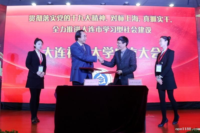 会上,教育局赵阳局长和大连广播电视大学党委于国喜书记为大连社区大学揭牌。上海开放大学楼军江书记与大连广播电视大学高博校长签署两校战略合作协议。大连甘井子社区学院李家强副院长作代表发言。中国成人教育协会伟德app下载安卓版专业委员会秘书长、上海市学习型社会建设服务指导中心办公室彭海虹主任作专题报告。