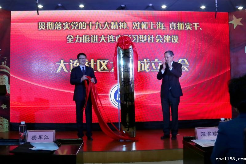 上海开放大学党委书记楼军江代表上海开放大学对大连社区大学的成立表示祝贺。他预祝大连社区大学能够把大连广播电视大学、社区大学办学系统建成全民学习的共享平台和终身教育的支持载体,为全体市民提供教育服务,为构建大连终身教育体系、建设学习型社会再立新功。